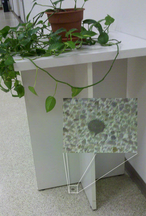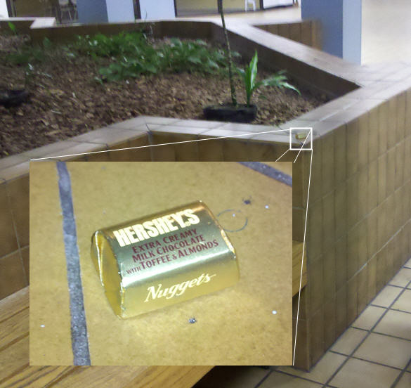 A quarter: I placed a quarter on the floor, next to one of the planters. It was visible but out-of-the-way enough that it wouldn’t be too obvious.