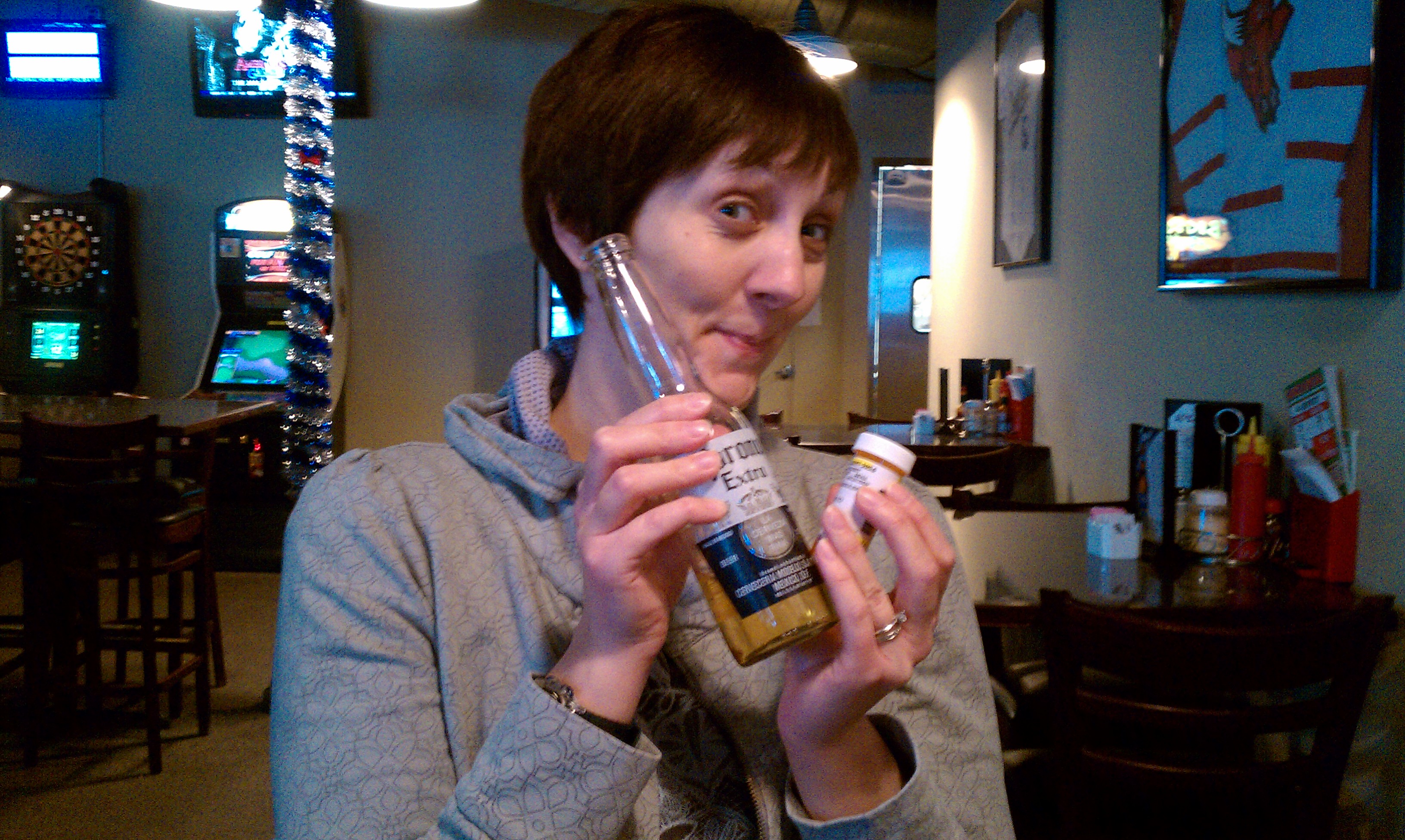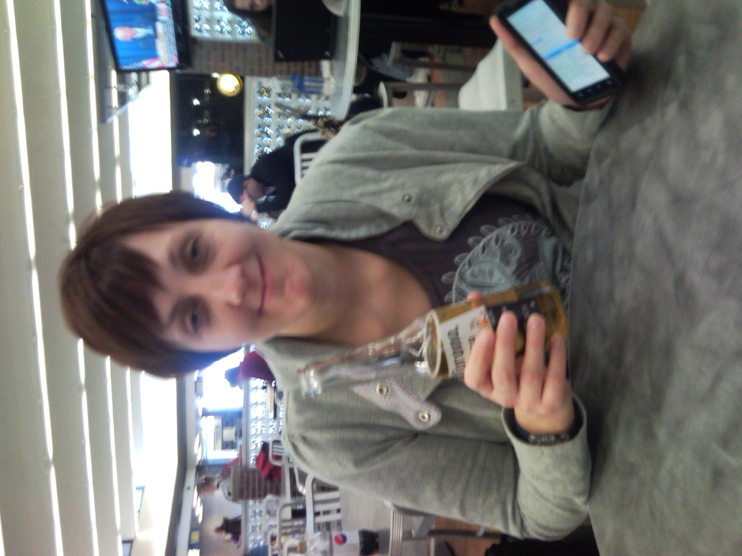 Here she is at the airport – making sure she is fully prepared for a trip abroad. She has the basics covered – beer and medication
