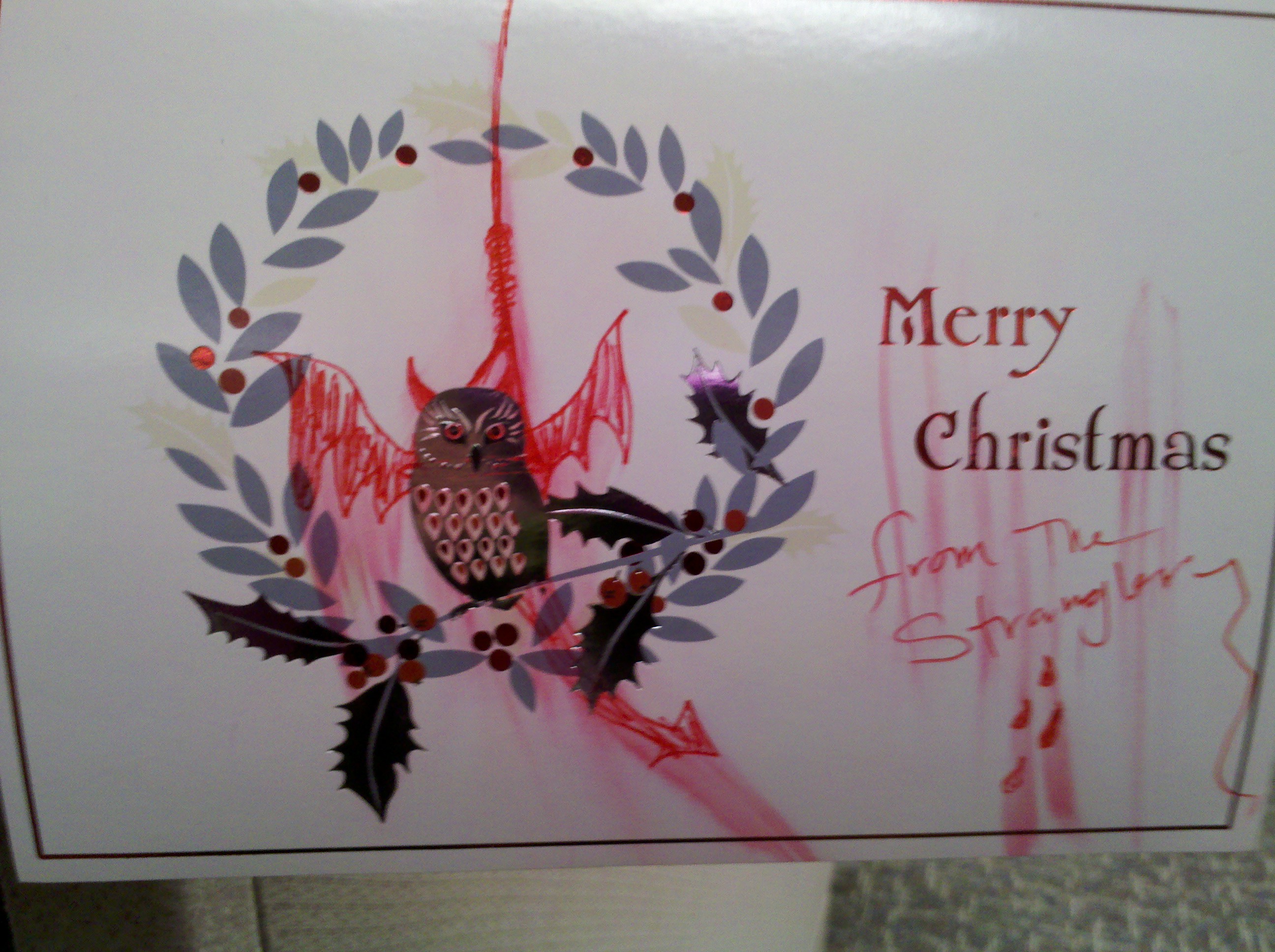 Ok so you all know that I call my British co-worker “The Strangler”. It started as a funny joke because she can be a hard ass. Well, it’s not so funny anymore. Turns out The Mall has its own Strangler and this person is leaving us morbid notes at our desks!