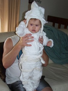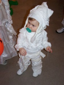 Several weeks ago I was really excited for Halloween and now that it’s almost here I’m so “not in the mood”. Sorry Halloween, I think I feel a headache coming on. It’s not that I don’t like Halloween, it’s that I’ve had ZERO time to get anything ready. Between getting Munchkin’s costume ready, work, planning for tomorrow’s conference, painting the house and trying to actually sleep and stuff, I’ve had no time to get myself a costume. And as of now, I have no energy to do it in time for a party on Friday. We had some good ideas too. Who knows, maybe I’ll get inspired and throw something together. Or maybe CJ and I will just take advantage of having a sitter and go to a movie instead.