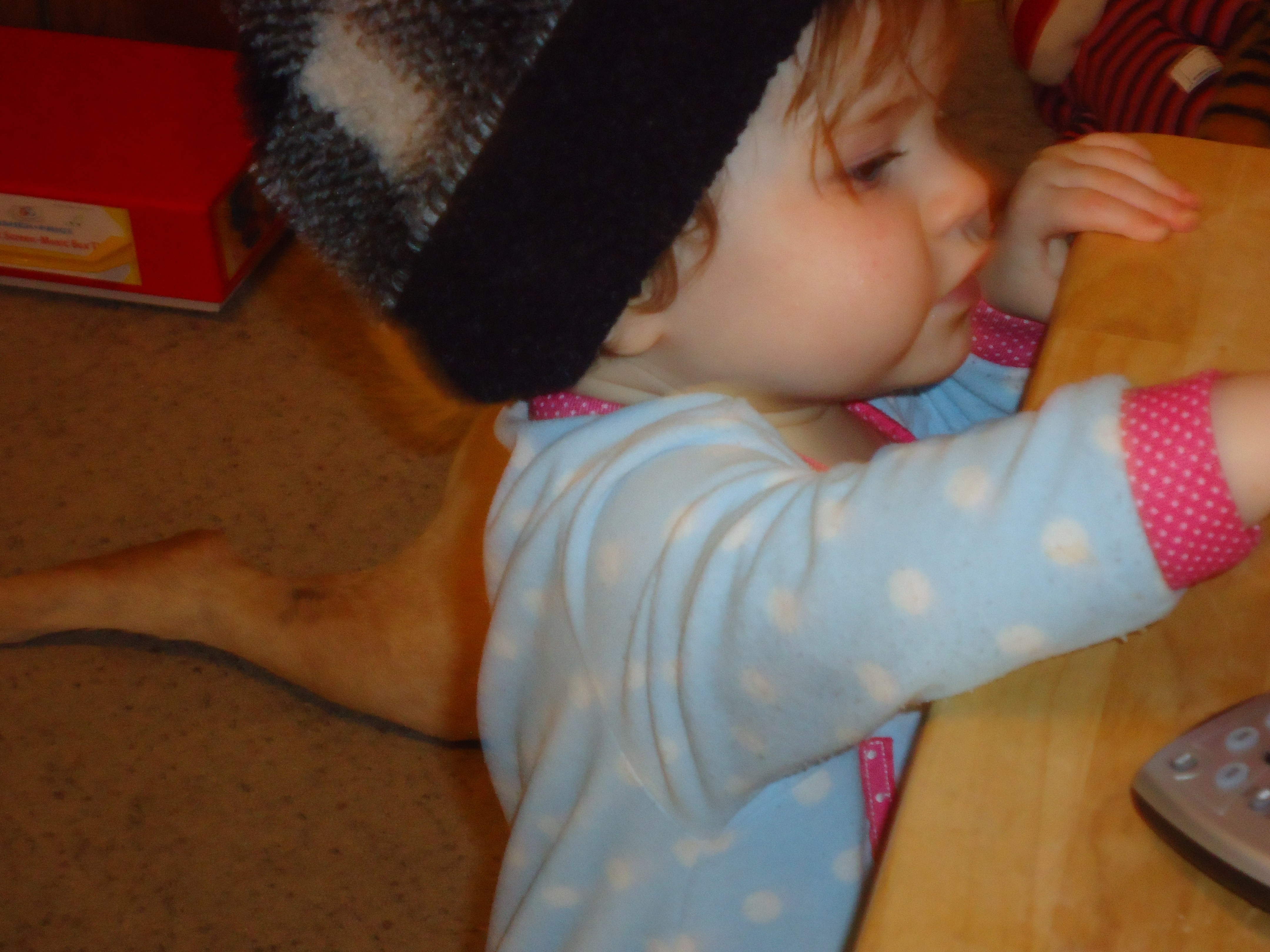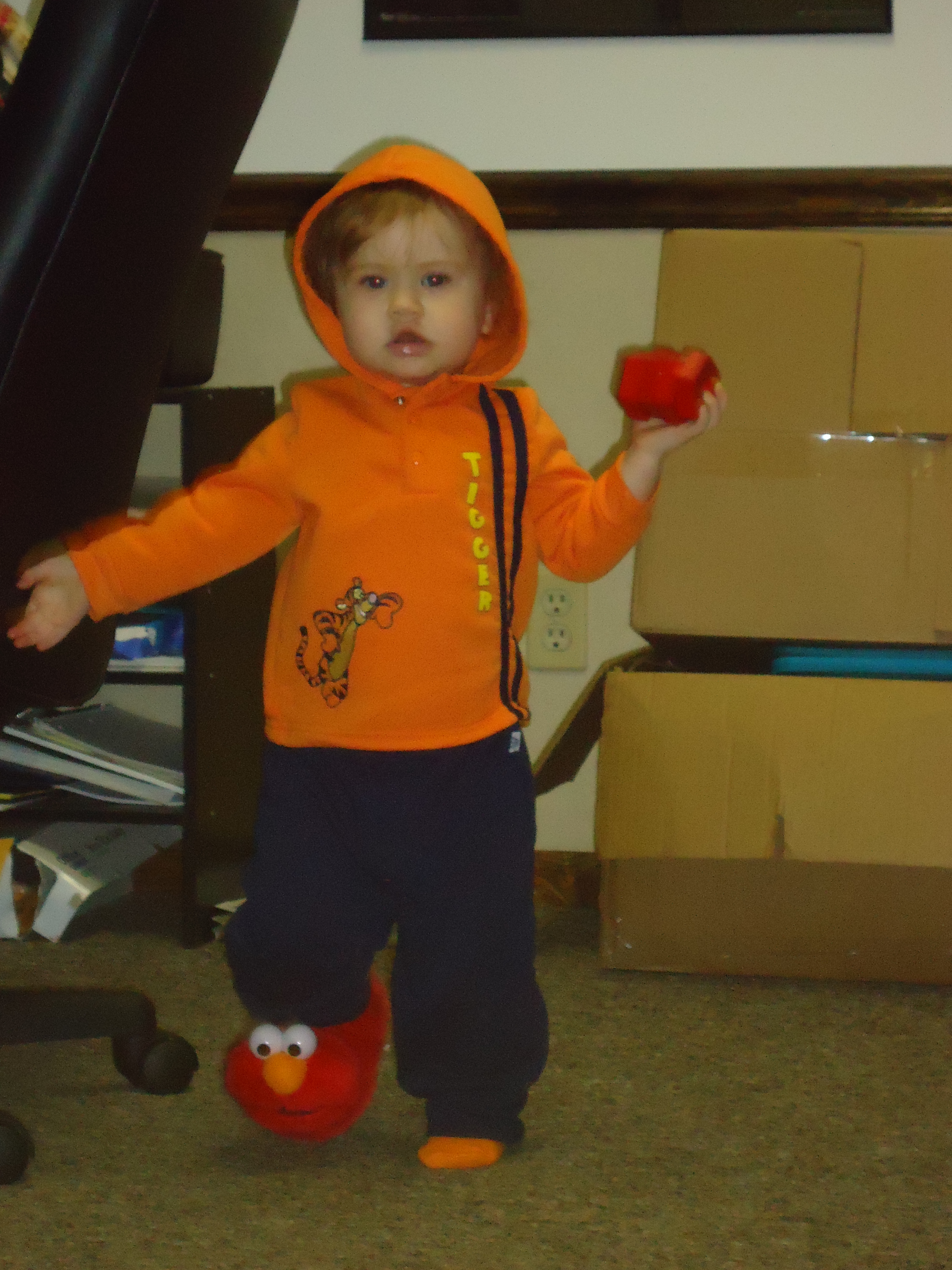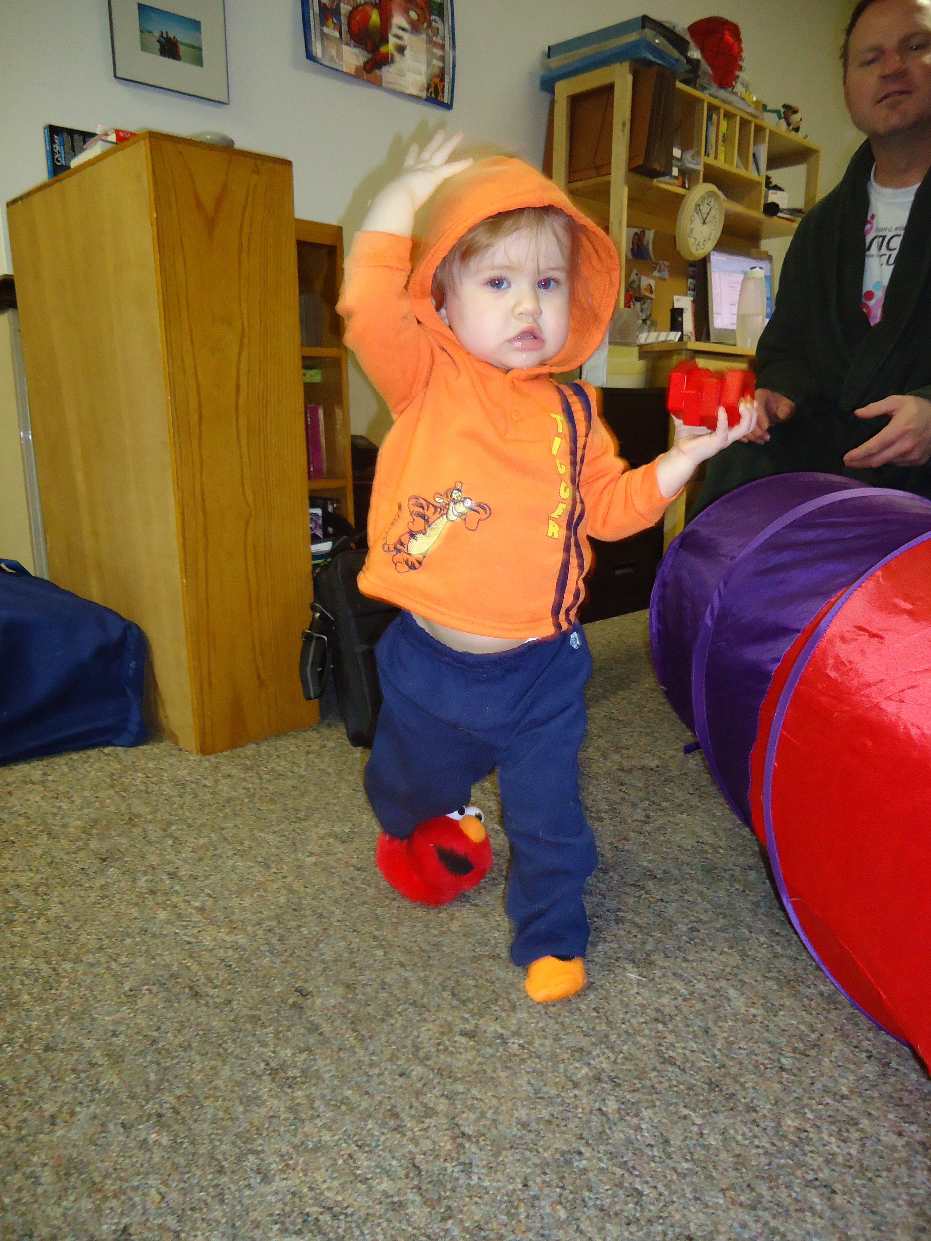 I love that she only has one Elmo slipper on. She’s gangsta like that, yo. That’s how this toddler rolls!