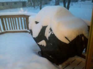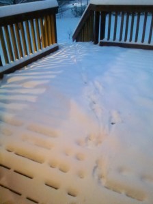 It has been nonstop all day so the accumulation right now is about double what you see in these pictures. Crazy, yet cozy. We’re planning to take Isabella out in her snow suit for playtime. I’ll definitely be taking pictures if we do!!