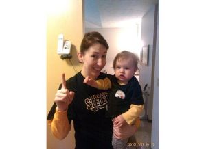 Don’t we all look cute in our Steeler gear? Too bad Samson doesn’t have a Steeler collar or something…we’ll have to work on that!